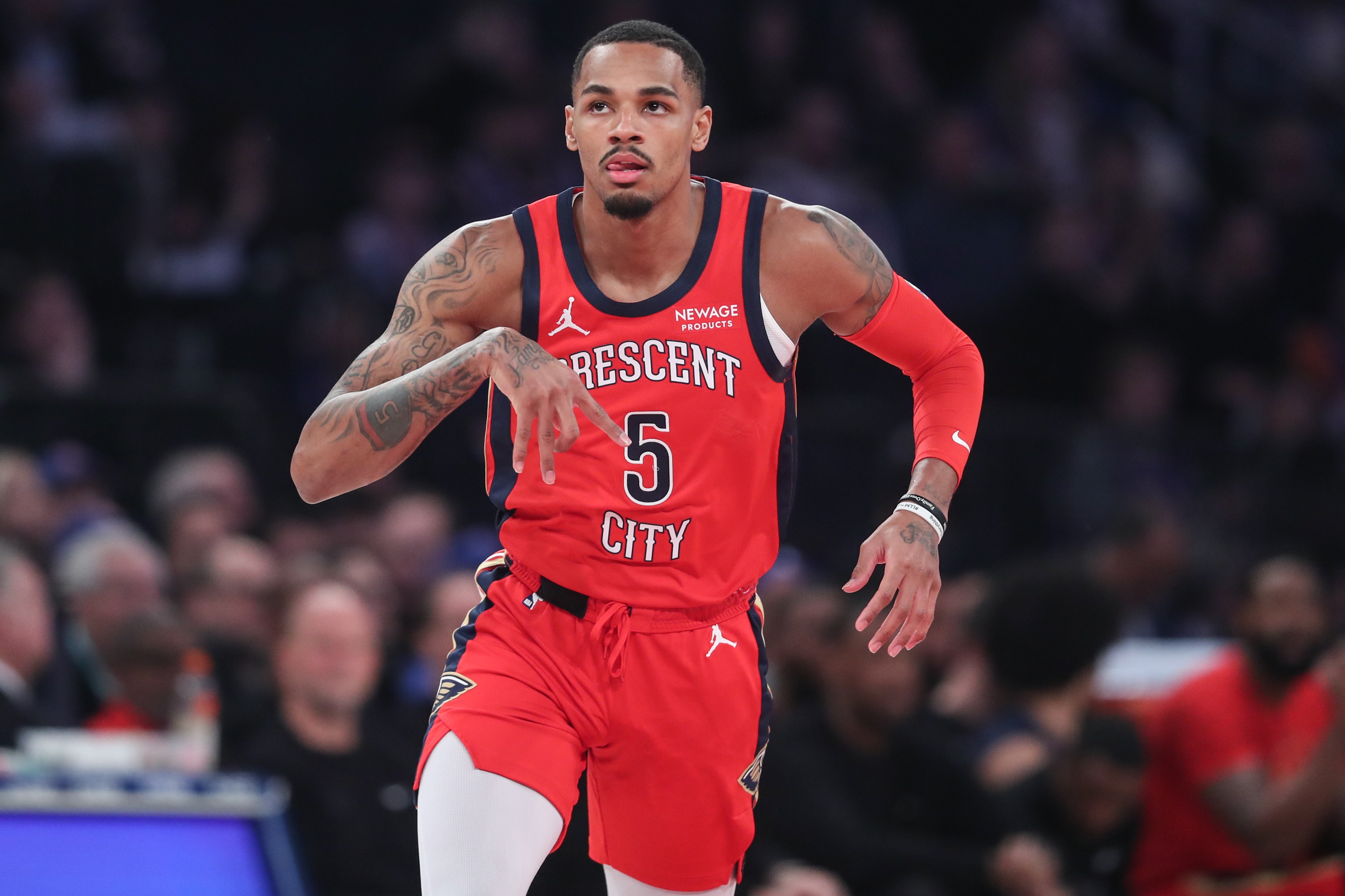 本场比赛,鹈鹕球员德章泰·穆雷有着不错的发挥,他首发出战了28分12秒,14投8中,三分3中1、罚球2中2,得到全队最高的19分,还有4篮板6助攻1抢断1盖帽进账,出现了1次失误和1个犯规,正负值-3。